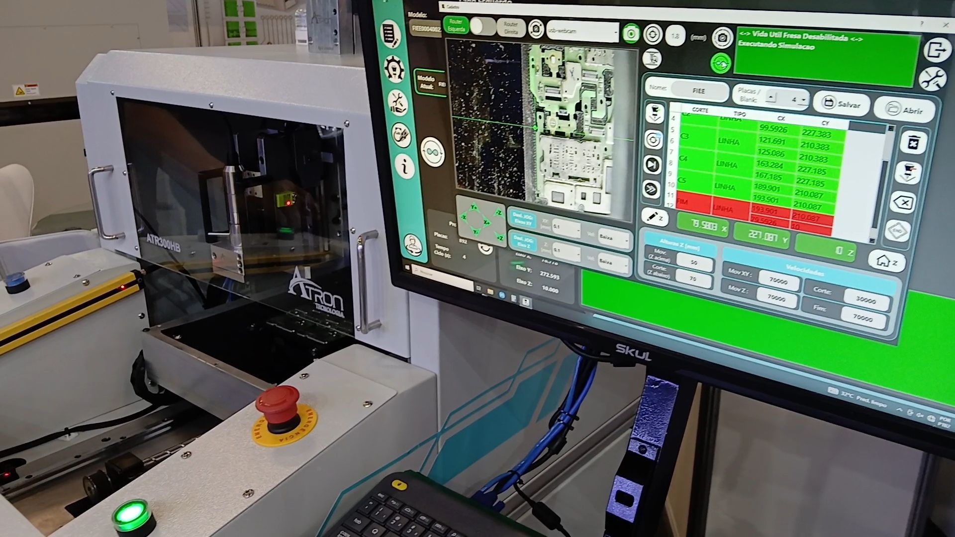 Contém uma interface bem intuitiva com fácil operação, permite a criação e edição de pontos de corte, nivelamento automático do eixo Z através do sensor probe, diminuindo o tempo de setup, possui sistema IIot (Industrial Internet of Things) que possibilita o monitoramento em tempo real do equipamento, auxiliando no processo produtivo.